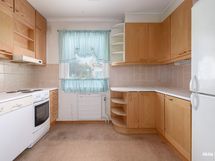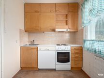 Liesi: sähköliesi. Työtasot: laminaatti. Kylmäsäilytys: jääkaappi/pakastin. Varustus: liesituuletin, astianpesukone.