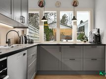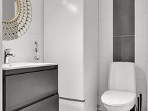 - Suihku, sauna, peilit, pesukoneliitäntä, lattialämmitys, Wc, kiinteät valaisimet
