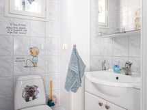 Varustus: suihkuseinä, lattialämmitys, wc-istuin, suihku, kylpyhuonekaapisto. Varustus: lattialämmitys.