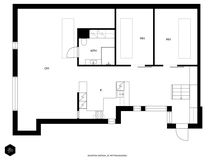 Bostaden består av entré, två sovrum, vardagsrum och öppet kök. Sovrummen har takfönster som går att öppna och har smidiga mörkläggningsgardiner som fungerar med el. Våningen är ett nybygge från 2019 och har använts som ett andra hem av de nuvarande ägarna. Den officiella bostadsytan är 86 kvadratmeter., men golvytans helhet mäter 112 kvadratmeter.