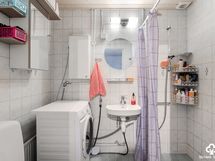 - Pesutilojen varusteet: Suihku, wc-istuin, pesukoneliitäntä, lavuaari ja lavuaarin hana 2020, bidee-suihku ja peilikaappi.