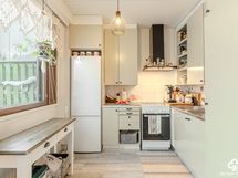 - Keittiön varusteet: Jääkaappipakastin (uusittu 2020), liesituuletin ja liesi (uusittu 2020). Liesi: Keraaminen liesi. Työtason materiaali: Laminaatti. Tehokas keittokomero.