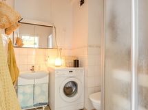 - Pesutilojen varusteet: Suihkukaappi, wc-istuin, pesuallas, pesukoneliitäntä, suihku, peilikaappi ja bidee-suihku. Erillisten WC:n lukumäärä: 1. Erillisen WC:n varusteet: WC-istuin. Erillisen WC:n kuvaus: Erillinen wc sijaitsee kellaritilassa.