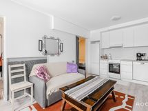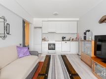 - Keittiön varusteet: Jääkaappipakastin, liesi, liesituuletin ja astianpesukone. Liesi: Keraaminen liesi.