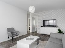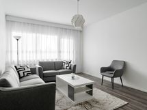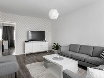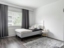 Tässä kolmannen kerroksen asunnossa on käytännöllinen pohjaratkaisu, johon kuuluu kaksi tilavaa makuuhuonetta ja hyvänkokoinen olohuone.