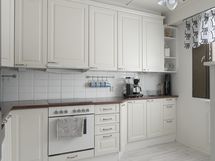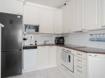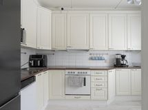 - Jääkaappipakastin, erillisuuni, keraaminen liesi, astianpesukone, kaapistot, kiinteät valaisimet.