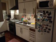 Peruskuntoinen kaksio 57m2 ikkuna, maalämpö, IVremontit tehty. Julkisivuremontti käynnissä parvekkeella lasikaiteet. Pohjakerroksessa oma varasto ja pyörä varasto. Vintillä häkki varasto.