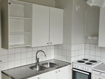 Keittiön varusteet: Jääkaappi pakastinlokerolla, sähköliesi, astianpesukone.
