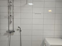 Suihku, Pesukone Peilikaappi, Allaskaappi, Laattalattia, Laattaseinä, Lattialämmitys