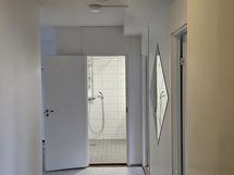 Kylpyhuoneen varusteet: Kylpyhuoneessa suihku, peilikaappi, kaappi allaskaappi, pesukone, lattialämmitys.