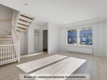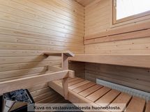 Tämä kaksitasoisen rivitalon ensimmäisessä kerroksessa keittiö aukeaa avaraan olohuoneeseen, josta on näkymä omalle terassille. Alakerran suureen vaatehuoneeseen saa tavarat hyvin järjestykseen ja lisää säilytystilaa löytyy vielä yläkerran makuuhuoneistakin. Yläkerrassa on myös tilava kylpyhuone, sekä oma sauna. Kesäisin voi grillailla tai vaikka lueskella aurinkoisella omalla terassilla. Syksyn ja talven viilenevissä illoissa on mukava lämmittää oma sauna ja hengähtää hetki.