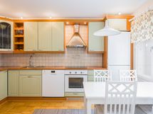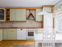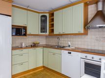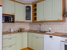 - Liesi: keraaminen, erillisuuni. Työtasot: laminaatti. Kylmäsäilytys: jääkaappi, pakastin. Varustus: liesituuletin, astianpesukone, kiinteät valaisimet.