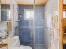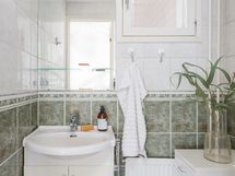 - Varustus: suihkuseinä, pesukoneliitäntä, lattialämmitys, wc-istuin, suihku, peilikaappi, kiinteät valaisimet, kylpyhuonekaapisto. Varustus: bidee-suihku.