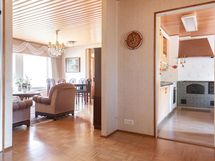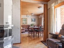 Kodin sydän on valoisa ja avara olohuone, jonka suuret ikkunat tuovat runsaasti luonnonvaloa ja avautuvat omalle, vehreälle takapihalle. Keittiö on tilava ja toimiva, ja sen tunnelmaa täydentää puuhella, joka tekee ruoanlaitosta lämmintä ja kodikasta. Takkahuoneessa oleva varaava Takka Centerin takka tuo lämpöä ja tunnelmaa kylmiin iltoihin, ja tila soveltuu mainiosti myös vierashuoneeksi tai etätyöpisteeksi.