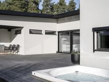 Atriumpihalla pääset nauttimaan rauhasta ja yksityisyydestä. Tilava terassi, kesäkeittiö ja tunnelmallinen Dropallas tekevät ulkotiloista täydellisen paikan rentoutumiseen ja yhdessäoloon, niin arkena kuin juhlanakin.