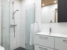 - Sauna, sähkökiuas, puukiuas Pihasauna, kylpyhuone 3, erillinen wc 2, suihku, peilit, peilikaappi, allaskaappi, pesukoneliitäntä, lattialämmitys Talossa ns. uusissa osissa vesikiertoinen lattialä.