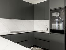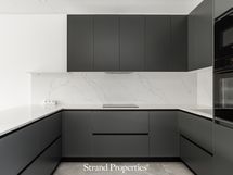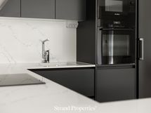 Varustelu, mustat kodinkoneet: Korkea jääkaappi, korkea pakastinkaappi, integroitu astianpesukone, induktioliesi, liesituuletin, erillisuuni, kalustemikro, allas ja hana (+vesivuoto vahti).
