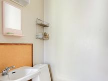 - Pesutilojen varusteet: WC-istuin ja suihku. Pesutilojen kuvaus: Keskellä taloa pieni suihkutila. Erillisten WC:n lukumäärä: 1. Erillisen WC:n kuvaus: Yläkerrassa on pieni erillinen wc-tila toisen makuuhuoneen yhteydessä.