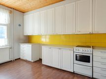 - Vanha erillinen keittiö 1970-luvulta hauskoilla kirkkailla laatoilla. Keittiön yhteydessä varastotiloja ruokakomero käyttöön. Keittiön takana on kaunis valoisa olohuonetila, jolloin tilasta tulisi sen avatessa kaunis iso avokeittiö-olohuonetila.