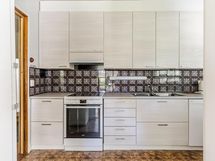 - Jääkaappi 2 kpl, pakastekaappi, induktioliesi, liesituuletin, mikroaaltouuni, astianpesukone, kaapistot, irralliset kaapistot, kiinteät valaisimet.