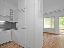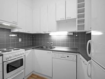 - Keittiön varusteet: Jääkaappipakastin, liesi, uuni ja liesituuletin. Työtason materiaali: Laminaatti.