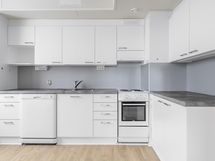 - Jääkaappipakastin, lattialiesi, sähköliesi, liesituuletin, kaapistot, kiinteät valaisimet.