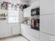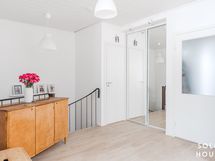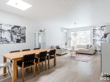 Asunnon sisätiloissa on käytetty laadukkaita ja raikkaita pintamateriaaleja, seinät ovat osin maalattuja ja osin kauniita tapetoituja seinäpintoja. Kodin kaikkien asuintilojen lattiapinnat ovat yhteneväisesti samaa luonnonsävyistä puukuosista lankkulaminaattia, kahdessa wc-tilassa ja pesuhuoneessa on yhdenmukainen laatoitusteema. Todella tyylikkäästi toteutettu kokonaisuus. Asuntoa on ylläpidetty hyvin ja tähän kotiin voi muuttaa suoraan sisään ilman pintaremonttihuolia.