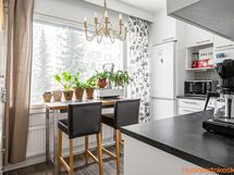 - Keittiön varusteet: Jääkaappipakastin, astianpesukone, liesi ja liesikupu. Liesi: Sähköhella. Työtason materiaali: Laminaatti. keittiö uusittu 2012.