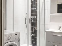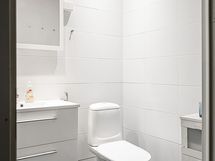 - Pesutilojen varusteet: WC-istuin, suihku, pesukoneliitäntä, allaskaappi, bidee-suihku, suihkukaappi ja peili. Pesutilojen kuvaus: laatoitettu.