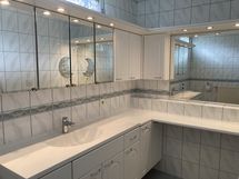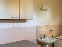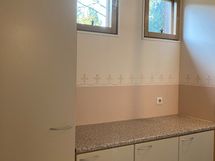 Apukeittiössä on kuivauskaappi ja pesukoneliitäntä.