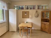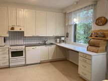 - Tilava, vaalea keittiö, jonka yhteydessä on apukeittiö.