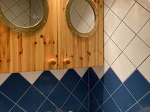 Seinät ovat tapetoituja, lisäksi puolipaneelia.
