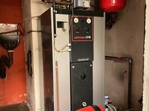 Öljy, Vesikiertoinen patterilämmitys. Kattilan valmistusvuosi 2005.