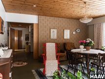 Puurunko, seinien eristeenä mineraalivilla, Julkisivuverhouksena tiiliverhousta ja puupanelointia. puu