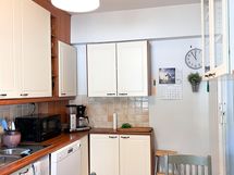 - Keittiön varusteet: Jääkaappipakastin (Uusittu v. 2020.), liesi (Uusittu v. 2022.) ja astianpesukone (Uusittu v. 2015.). Liesi: Keraaminen liesi. Työtason materiaali: Laminaatti. Keittiö on uusittu vuonna 2005.