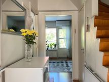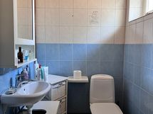 - Pesutilojen varusteet: Suihku, wc-istuin, pesuallas ja allaskaappi. Pesutilojen kuvaus: Yläkerrassa on suihku/wc.