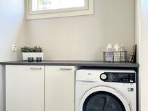 Alakerrassa sijaitsevat myös kodinhoitohuone, josta käynti ulos kodin toisen kuistin kautta, sekä kylpyhuone/wc.