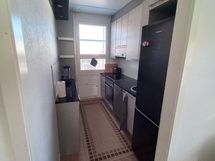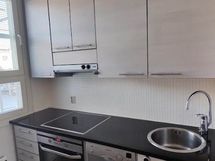 Keittiön varusteet: Jääkaappi, erillinen pakastin, liesi ja astianpesukone. Liesi: Induktioliesi. Työtason materiaali: Kivi.