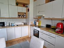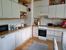 - Keittiön varusteet: Jääkaappipakastin (uusittu vuonna 2018), liesi (uusittu vuonna 2023), liesituuletin ja astianpesukone. Liesi: Induktioliesi. Työtason materiaali: Laminaatti.