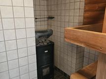 Sauna piharakennuksessa, puukiuas, kylpyhuone keskikerroksessa ja yläkerrassa, erillinen wc keskikerros ja yläkerta, suihku päärakennus ja saunarakennus, amme, kaapit, pesukoneliitäntä kylpyhuone, lattialämmitys kylpyhuone.