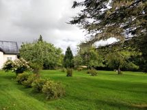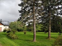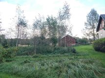 Mukavan vehreä tontti 3320 m², jossa on nurmikenttää sekä vanha kasvimaa.