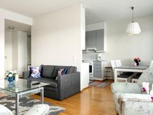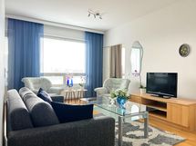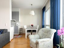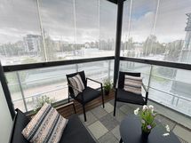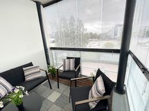 Avara pohjaratkaisu mahdollistaa tilan tehokkaan käytön ja ikkunoista tulviva luonnonvalo luo miellyttävän ja kutsuvan ilmapiirin. Olohuone ja keittiö muodostavat toimivan kokonaisuuden, jossa on tilaa sekä rentoutumiselle että viihdyttämiselle. Iso, lasitettu parveke tarjoaa lisätilaa aikaisesta keväästä pitkälle syksyyn.