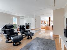 - Talossa on kolme kylpyhuonetta, kellarikerroksessa kaksi; pääkylpyhuone, jossa kaksi suihkua ja poreamme sekä puulämmitteinen sauna. Lisäksi yksi kylpyhuone, jossa wc-istuin, suihku, allas- ja peilikaappi sekä bidee. Päämakuuhuoneen yhteydessä kolmas kylpyhuone, joka on saneerattu viimeisimpänä, täällä myös wc-istuin, suihku, allas- ja peilikaappi. Eteisessä on erillinen wc, jossa wc-istuin, allaskaapit ja peili. Kodinhoitohuoneessa pesukoneliitäntä.