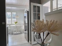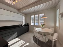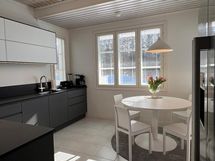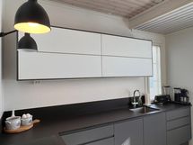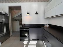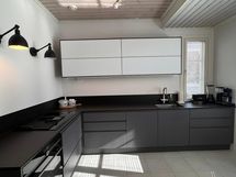 - Keittiön varusteet: Jääkaappi, erillinen pakastin, liesi, astianpesukone ja erillisuuni. Liesi: Induktioliesi. Työtason materiaali: Kivi. Keittiö on huippulaadukkain materiaalein uudistettu vuonna 2021 . Keittiön on toimittanut kotimainen Puustelli. Mikroaaltouuni on uunin toiminnoissa.