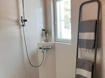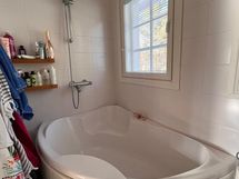 - Pesutilojen varusteet: Suihku, kylpyamme, lattialämmitys, bidee-suihku, wc-istuin, allaskaappi, pesuallas ja peili. Pesutilojen kuvaus: Alakerran kylpyhuoneen yhteydessä on sauna.