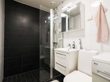 - Varusteet: Suihkuseinä, Pesukoneliitäntä, Lattialämmitys, WC, Suihku, Peilikaappi, Kiinteät valaisimet