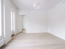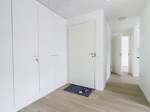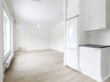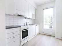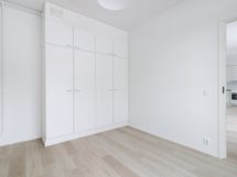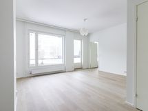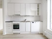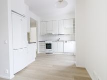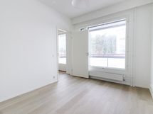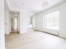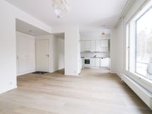 Huoneisto pitää sisällään olohuoneeseen yhdistyvän raikkaan vaalean keittiön, kaksi valoisaa makuuhuoneetta, lasitetun parvekkeen, kylpyhuoneen ja oman saunan.
