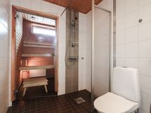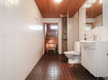 Seinämateriaali: kaakeliseinä, paneeliseinä. Lattiamateriaali: laattalattia