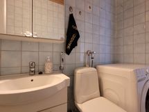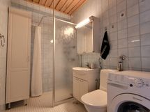 - Varusteet: suihku, suihkuseinä, peilikaappi, allaskaappi, kiinteät valaisimet, kylpyhuonekaapistot, pesukoneliitäntä, WC