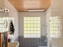 - Pesutilojen varusteet: WC-istuin, suihku (Toisessa kylpyhuoneessa on kaksi suihkua.) ja lattialämmitys. Pesutilojen kuvaus: Saunan pesuhuoneessa on kaksi suihkua.